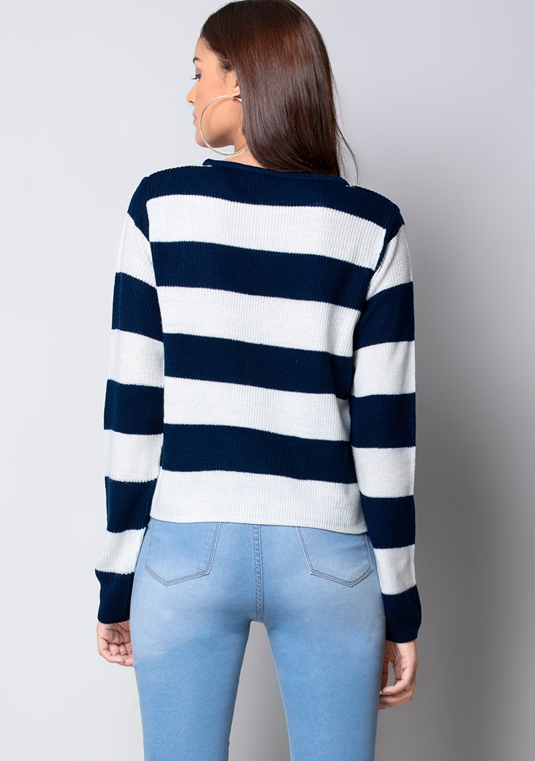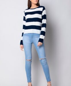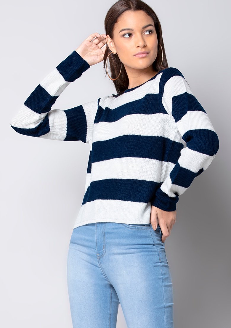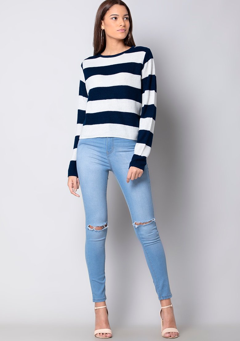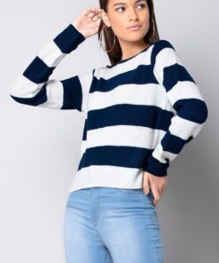Navy Striped Round Neck Sweater