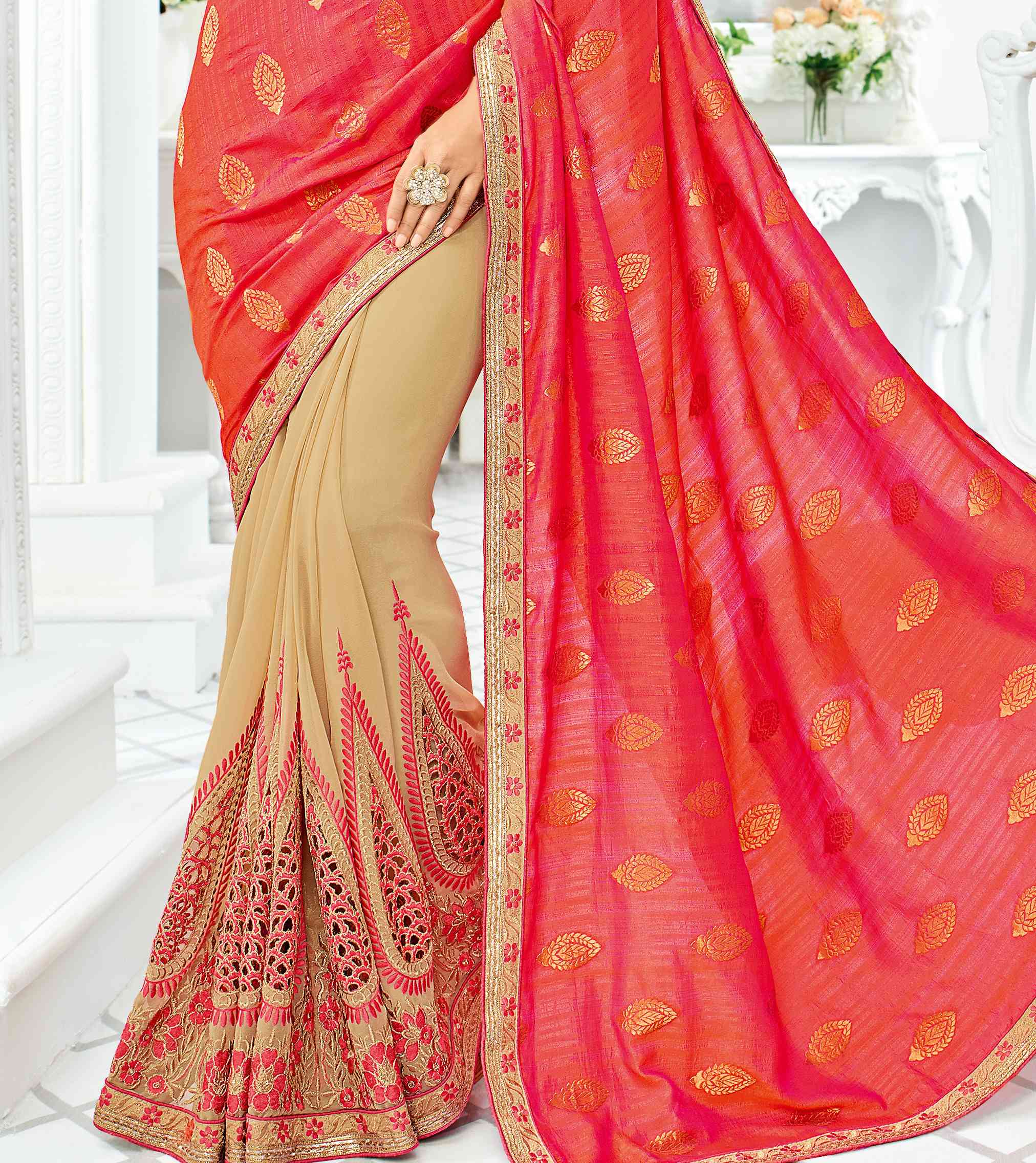 Traditional dupion silk saree with unstitched blouse material. You can adore this beautiful saree to a weeding or a party . Fashion Brisk brings this beautiful saree to your doorstep at very reasonable price.